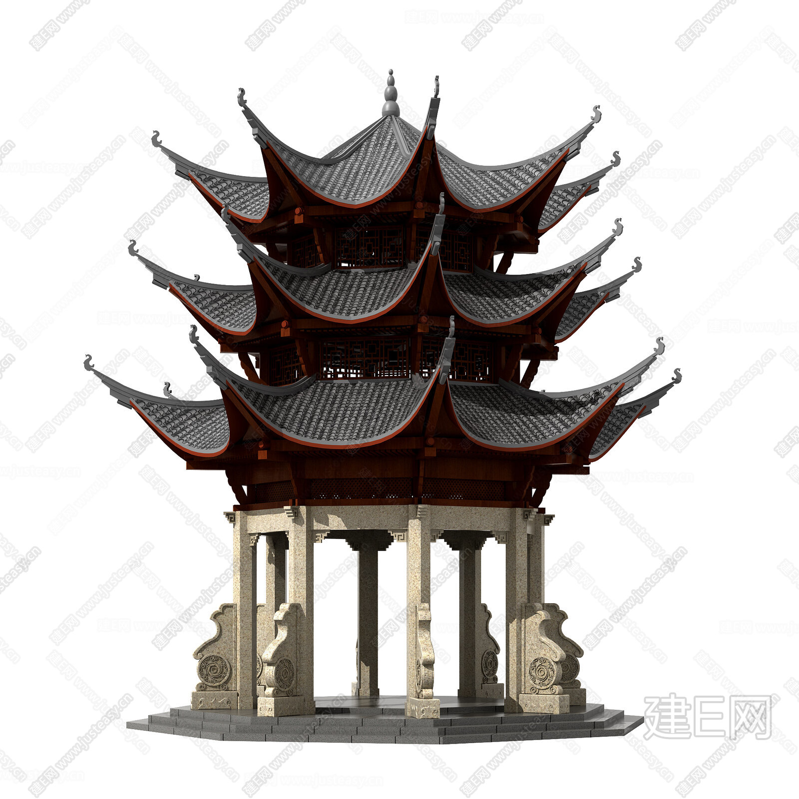 中式古建塔楼佛塔钟楼 3d模型下载