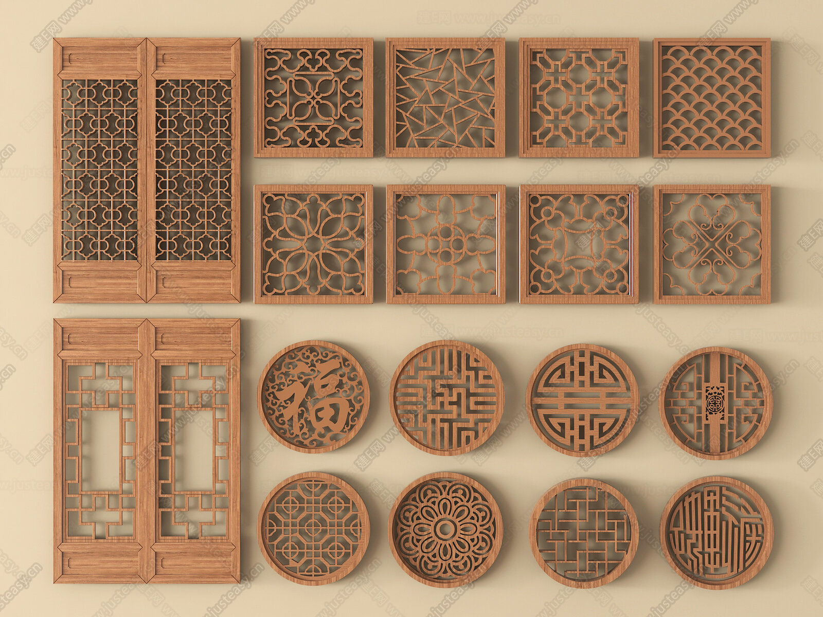 新中式镂空窗 镂花窗 花格 镂空花格窗 3d模型下载