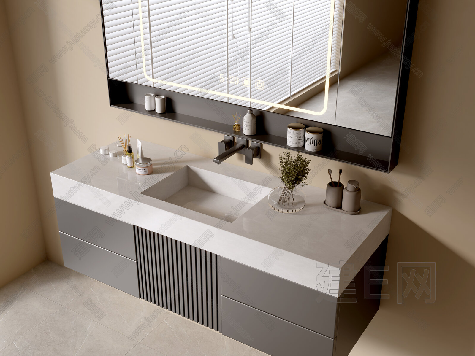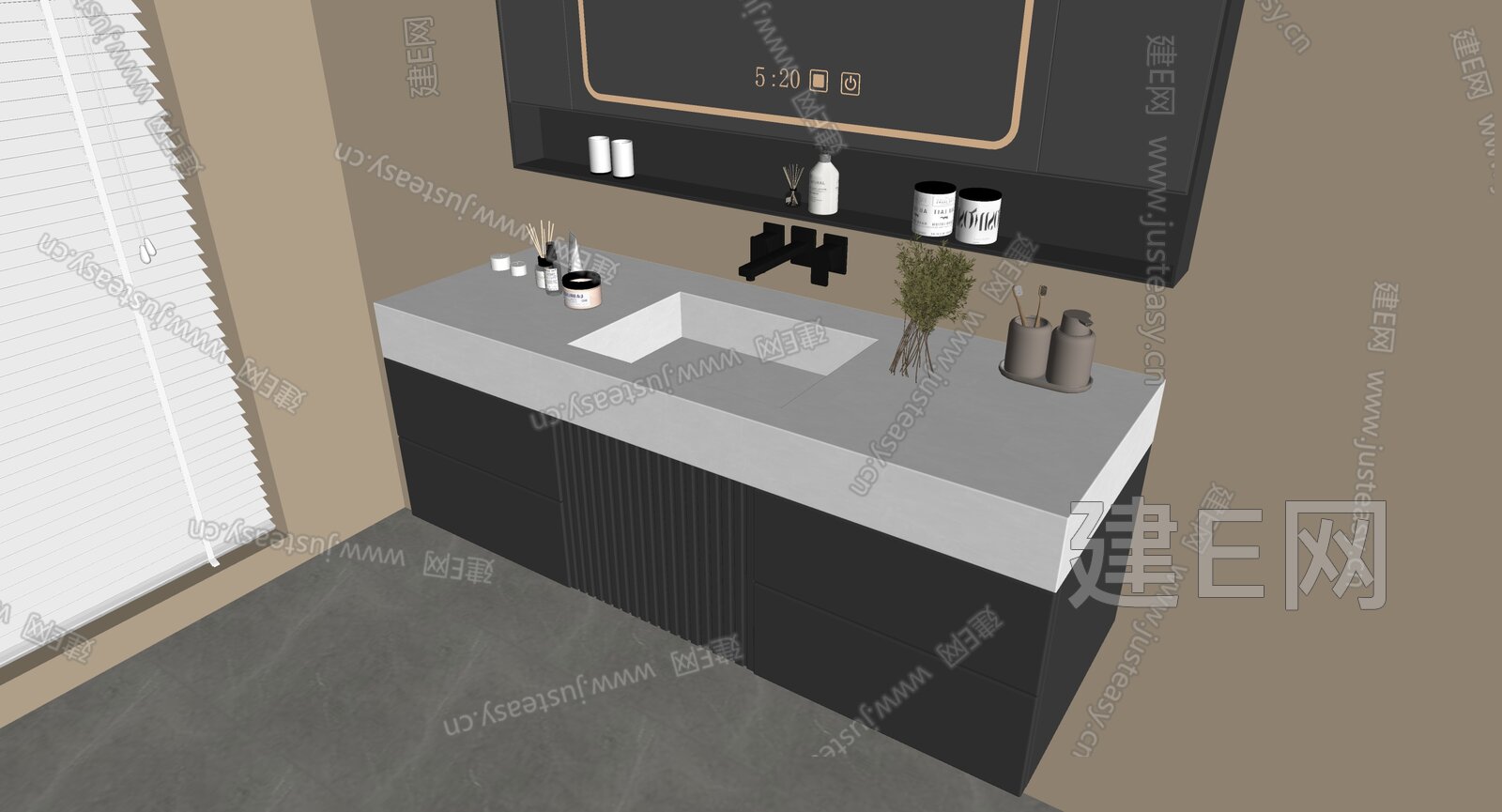 现代浴室柜 浴室台盆 浴室摆件 su模型下载