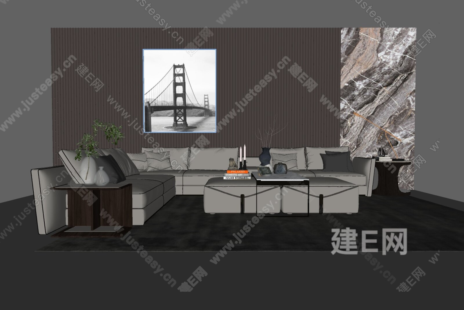 意大利 Visionnaire 现代沙发茶几组合 su模型下载