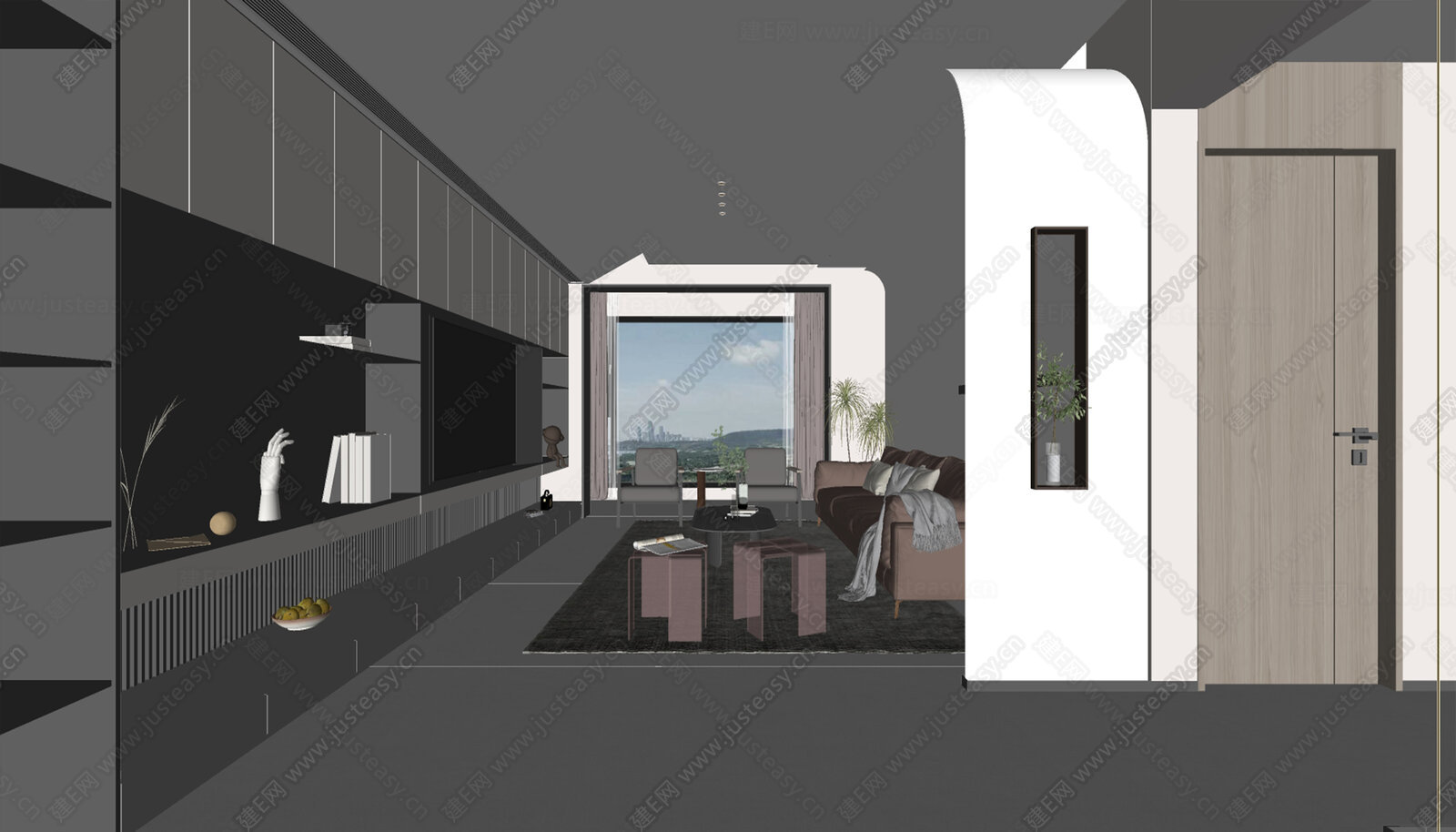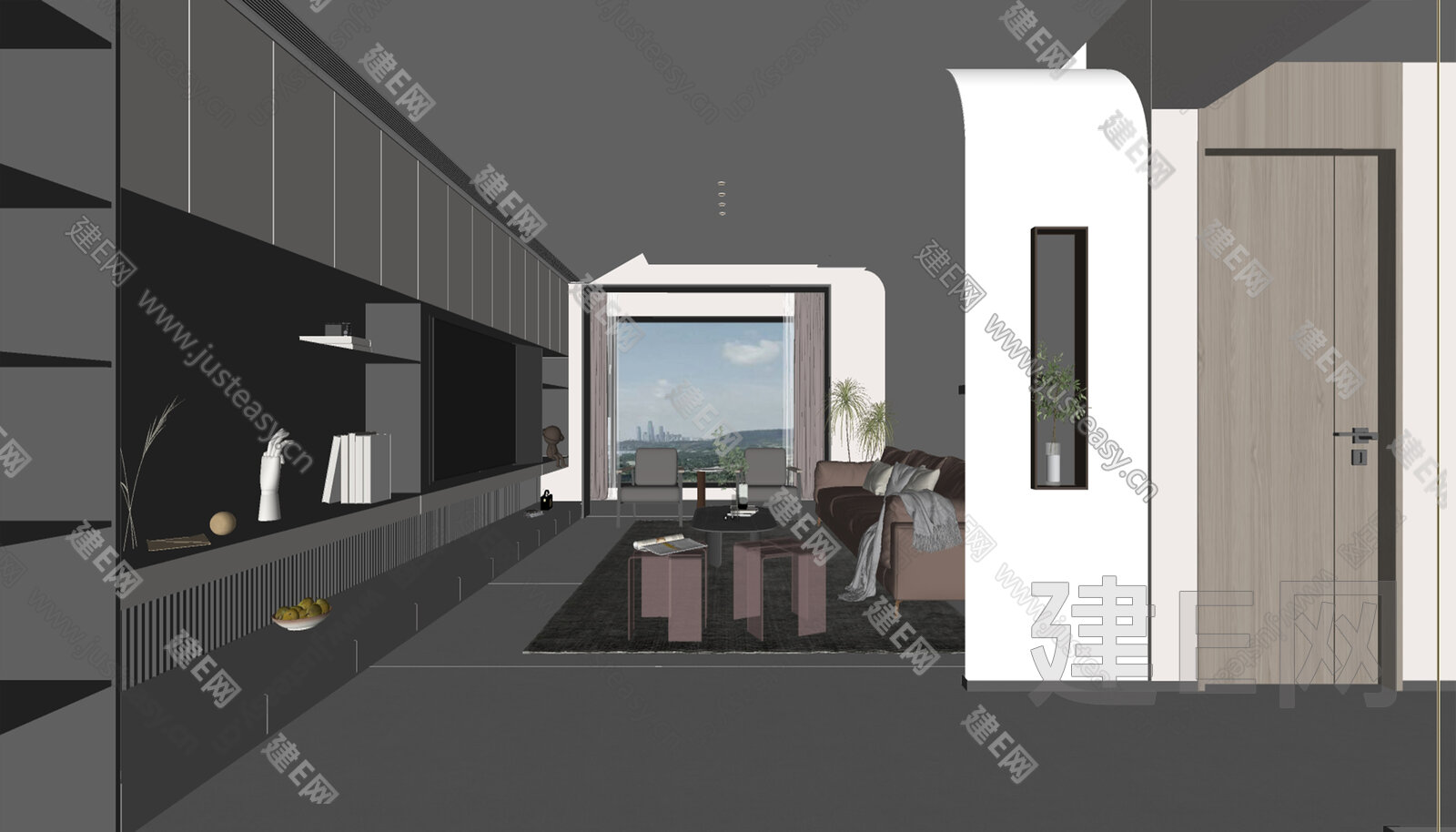 现代风格 家居客厅 大平层客厅 组合沙发 su模型下载